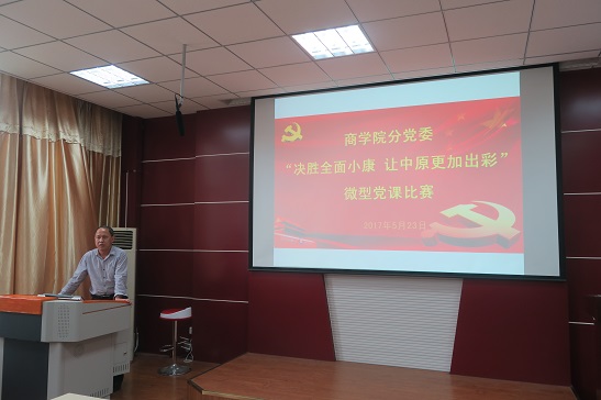 5月23日下午,mg娱乐电子游戏网站官网分党委“决胜全面小康,让中原更加出彩”微型党课比赛在经管楼310会议室举行。学院党委成员和全体教工党员一起观看了比赛。