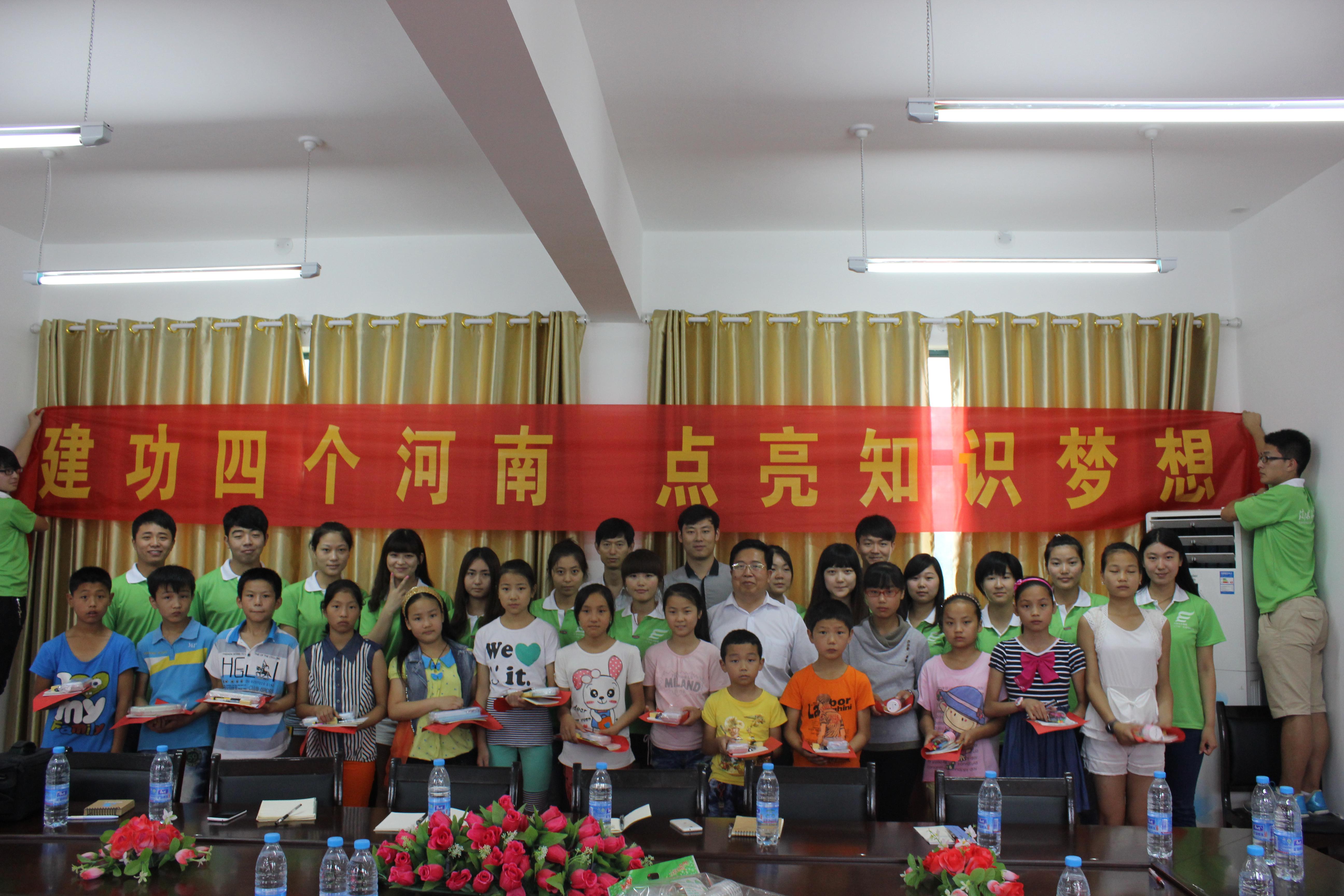 潘新镇位于罗山县南部,许多青壮年外出打工,留守儿童对爱充满渴望。为传递爱心,帮助孩子们树立乐学思想,7月1日,经济学院“三下乡”社会实践队来到潘新中心小学,在这里开展了题为“建功四个河南,点亮知识梦想”社会实践活动。
