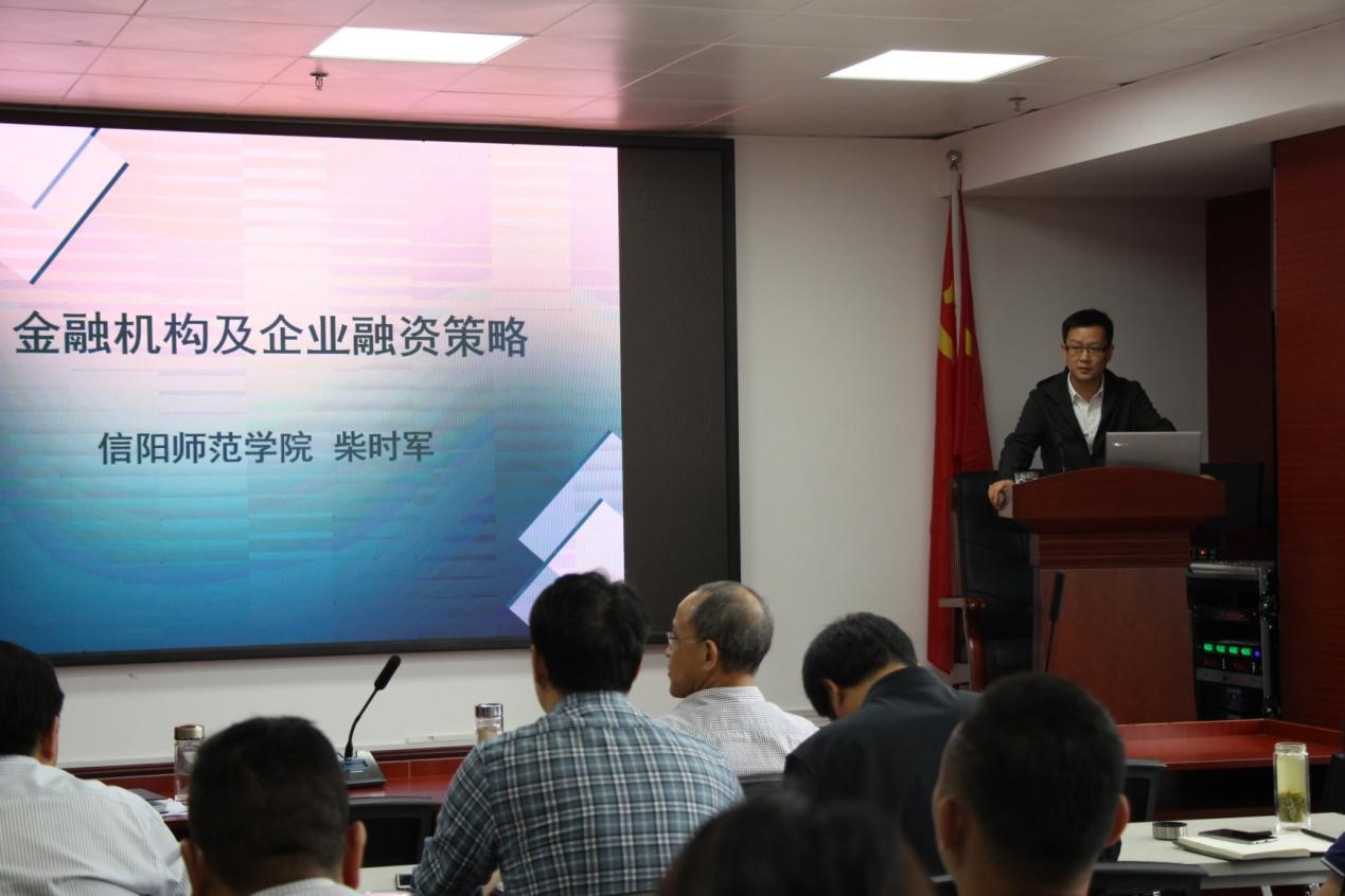 根据mg娱乐电子游戏网站官网2019年培训脱贫攻坚工作实施方案,9月20日mg娱乐电子游戏网站官网“金融扶贫”博士服务团,在学院党委书记盛正国教授的带领下,赴潢川县发展投资有限责任公司(简称发投公司)举办“校地结对帮扶”金融理论与政策培训班,发投公司书记兼董事长梅利平同志及三十多名公司骨干参与培训。