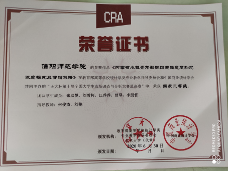 在精彩的成果展示及激烈答辩后,mg娱乐电子游戏官网学生张艺严同学参与的团队项目《互联网理财市场客户挖掘与维系》(指导教师:乌力雅苏,孙兰银),曾琴、李朋哲同学参与的团队项目《河南省小镇青年影院消费满意度和忠诚度探究及营销策略》(指导教师:何俊杰、刘艳)荣获国家级三等奖;许瑞同学参与的团队项目《信阳红色旅游资源的消费者行为分析及推广提升策略》(指导教师:孔栋、周强)荣获省级二等奖。